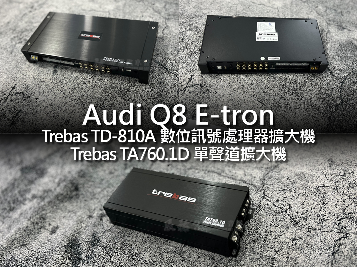 🎵客製化喇叭讓音樂昇華不平凡層次,車主重視音樂種入心坎的體驗,想要餘音繞樑一定要特別規劃📋,此次 Audi Q8 E tron 車款升級德國零點 RA 系列 + CS 系列🔊,完美結合高解析與高音質表現,讓每一首歌都能展現細膩層次;同時搭配 Trebas TD-810A 數位訊號處理器🤖,精準調校聲音定位,加上 Trebas TA760.1D 單聲道擴大機✅,強而有力地驅動低音,帶來澎湃震撼的臨場感。🤟