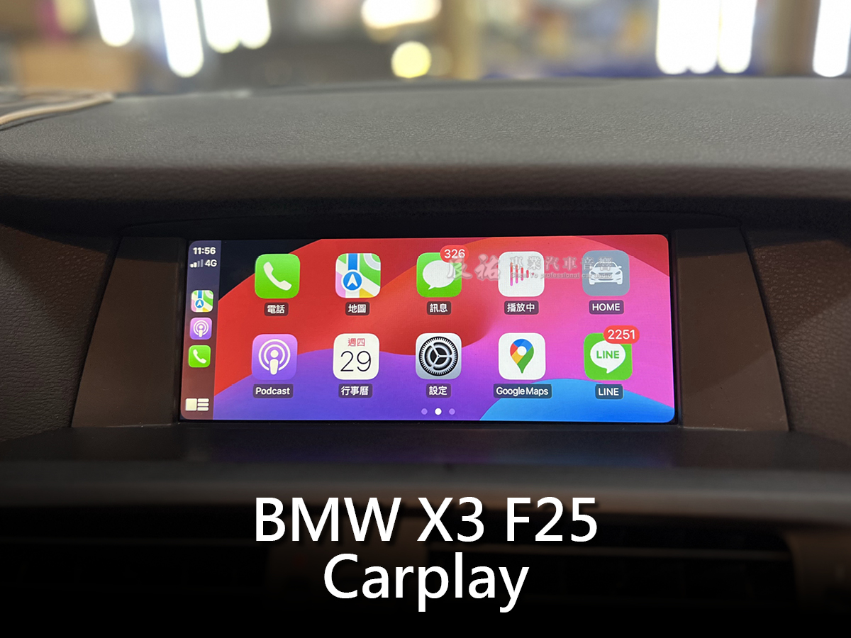 BMW X3 F25 來升級 無線 Carplay,車主不想拆螢幕只想增加功能,Carplay滿足可聽線上音樂及Google地圖,另外也可接通Line及電話,更多功能歡迎來加裝體驗