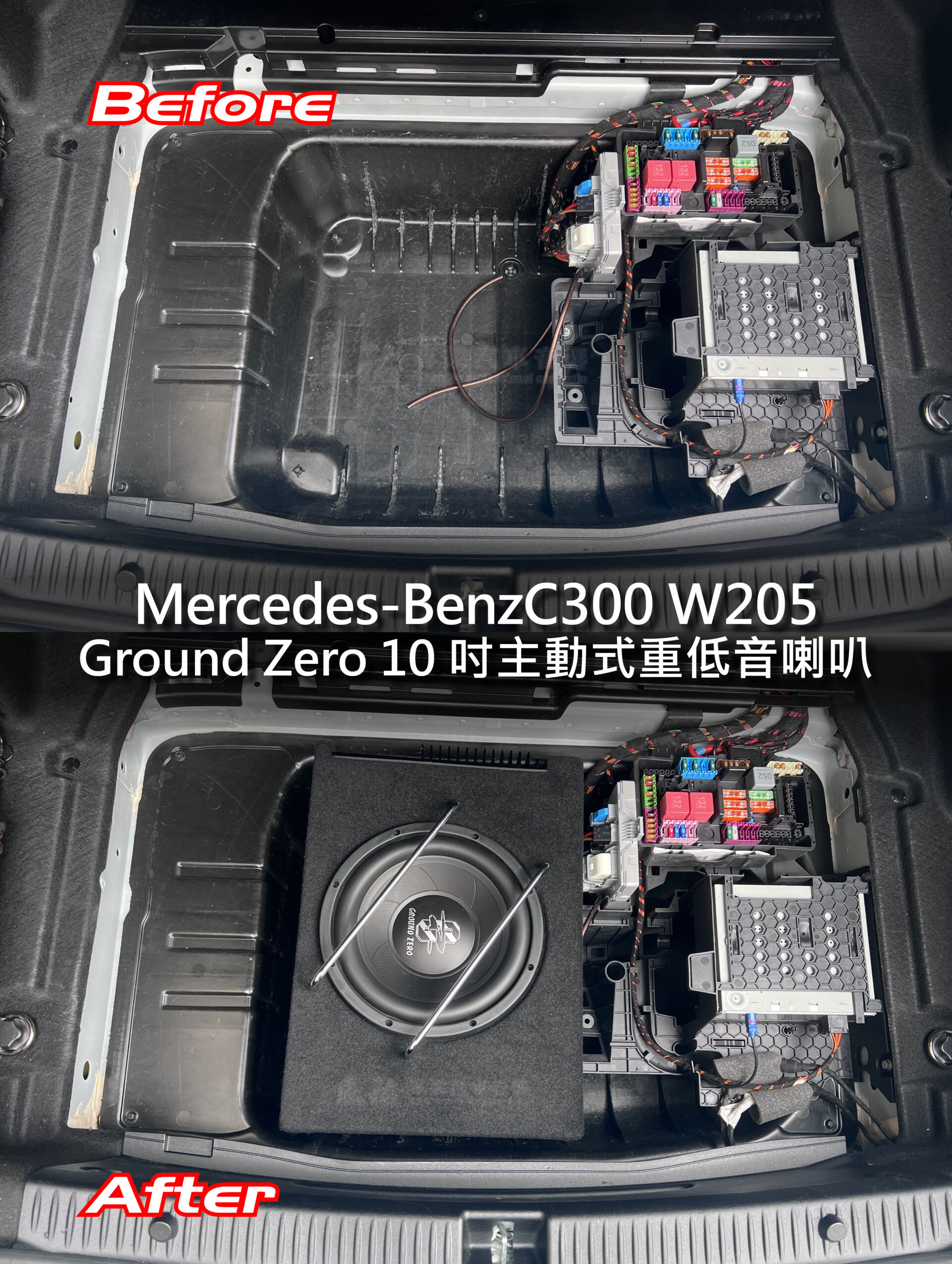 重低音喇叭音箱可放置後車廂,不佔用乘坐位置