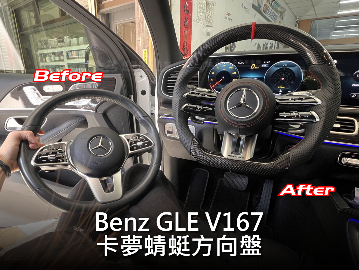 🌟BENZ 賓士 GLE V167 👉🏻來辰祐安裝21年卡夢蜻蜓方向盤,21年從外型到操作都有不同體驗,設計上手指辨別的性質👍,除了多媒體、輔助駕駛觸控鍵外,它還有換擋撥片、懷擋以及運動駕駛模式切換按鈕,實現更暢快的駕駛動態調節。